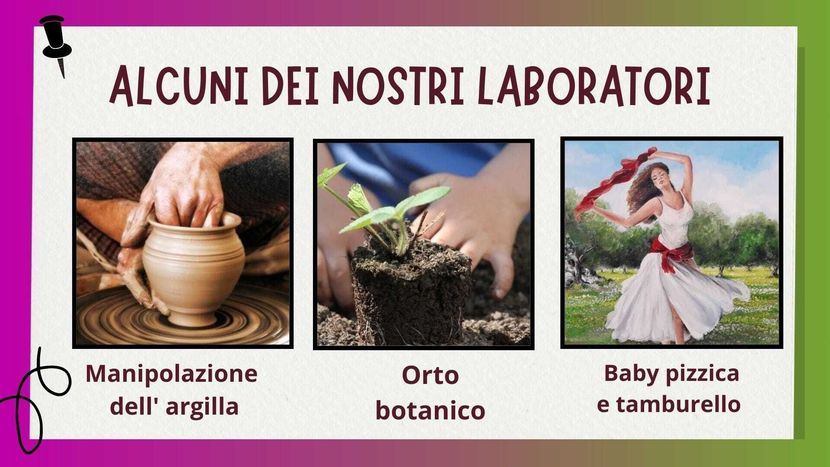 - Attività musicali e ritmiche ispirate alla pizzica e ai suoni locali